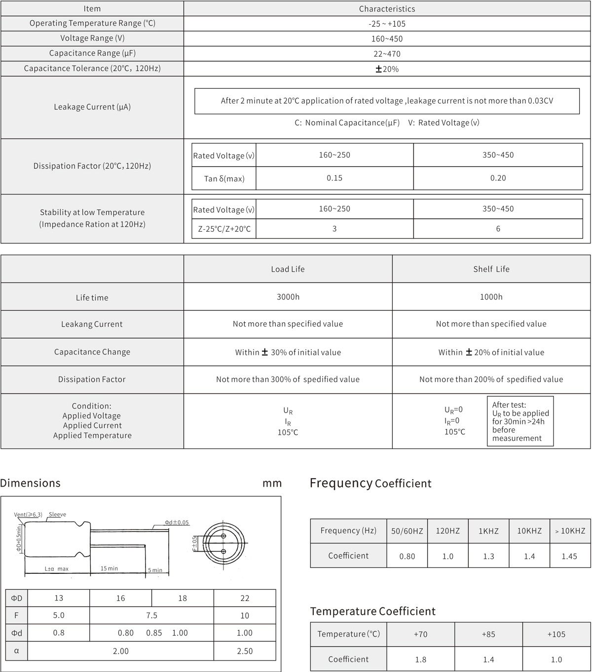 High rated voltage 160V to 450V